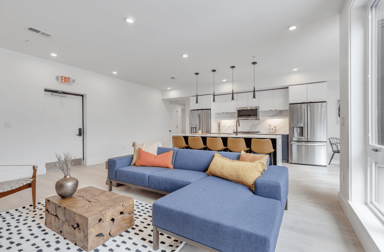 They also invested to enhance the building’s air quality to ensure a safe living environment for all, upgrading the HVAC with a whole house HEPA, a mechanical air filter that traps 99% of harmful particles it encounters. In addition, they designed every co-living bed to accompany dedicated bathrooms; with 95% of the building’s bedrooms offering an en-suite bathroom, Viva boasts limited shared common elements. But that’s not all: Square and Lot’s dedication to building the healthiest, safest co-living housing around is also reflected in their selection of fixtures and finishes. Flat surface cabinets were chosen to allow for easier cleaning, more refrigeration was added to limit common areas, and even electronic locks were added to facilitate hands-free entry.