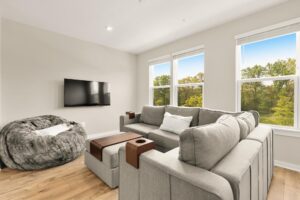 The living area offers large windows and calming views of trees and the pond, along with access to a private balcony ideal for morning coffee or evening relaxation. A stylish powder room completes this floor. Upstairs, you’ll find two spacious bedrooms, including a serene primary suite with a spa-inspired ensuite bath, a second full bath, and in-unit laundry. The top level offers even more space with a third bedroom, a full bath, and a second living area that opens to a private roof deck with beautiful views of the treetops and peaceful surroundings. Located just a 3-minute walk to the West Hyattsville Metro, and close to grocery stores, parks, local restaurants, cafes, and more, this home blends comfort, convenience, and modern style in an unbeatable location.