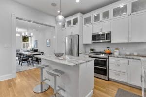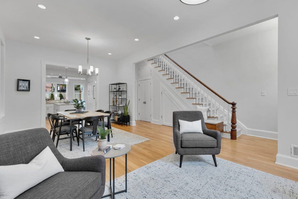 Welcome to this sun-filled, semi-detached Federal-style home with soaring ceilings and a big, grassy backyard on one of the best blocks in Capitol Hill. Located 1 block from Eastern Market within the Hill’s Historic District and the Brent School District, this spacious, extra-wide home sits in a spectacular location, centrally located to the Metro, the restaurants and shops of Barracks Row, the Capitol and the National Mall. This home has had only two owners in the past 60 years, and the current ones paid close attention to quality and detail when gut-renovating and expanding the residence in 2014. An open floor plan on the first level retains the natural room divisions and allows sunlight to pour through the house. Spanning 2,400 square feet on 2 levels, the home is outfitted with white oak floors on the first level and stunning original heart pine wood floors on the 2nd level. A thoughtfully maintained 130-year-old staircase connects the two floors. The front living area boasts towering 11-foot ceilings and huge front windows. The gracious room proportions of the living and dining room next to the open kitchen, which includes an expansive kitchen island, provide an ideal flow for entertaining. A separate laundry room provides tons of workspace and storage. Just beyond the kitchen, an expansive family room with a wall of windows overlooks a green and serene backyard. On this level, a powder room is tucked away at the end of the foyer. Upstairs is just as roomy and bright, with five skylights and 10-foot ceilings. This floor features a generous primary suite that has an en-suite bathroom, a row of large windows, and a massive walk-in closet with custom shelving. The two additional bedrooms are also spacious and sunny, and another fully renovated bathroom glows with marble flooring.