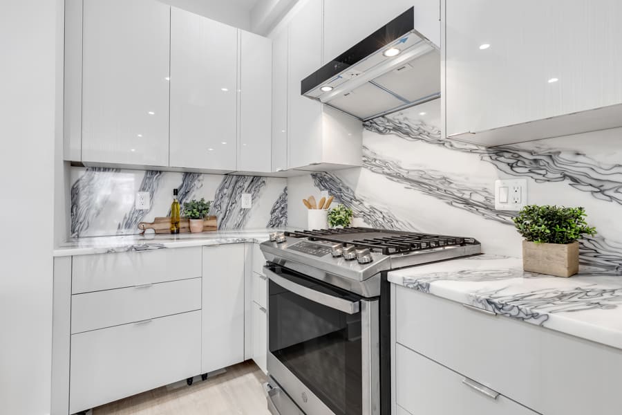 Within each unit, the main living area—which offers enough room to both stretch out and entertain—leads to the chef’s kitchen, a space where elegance and utility converge like never before. With gas cooking, flat panel cabinets, stainless steel appliances, modern light fixtures, and a large island with striking quartz counters, this culinary haven is the key to your loftiest hosting aspirations. Each home’s thoughtful design extends to its spa-like bathrooms, all of which exude tranquility and sophistication at the same time. You’ll also find two spacious bedrooms in units 3 and 5, each supremely sunlit and designed to make you feel right at home. Both homes are pet-friendly, come with an in-unit washer, and offer parking for sale.