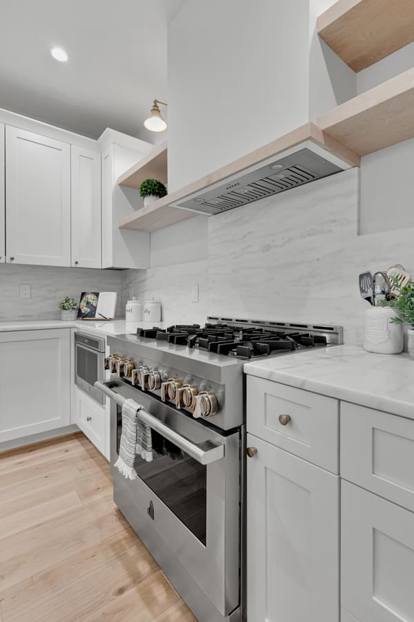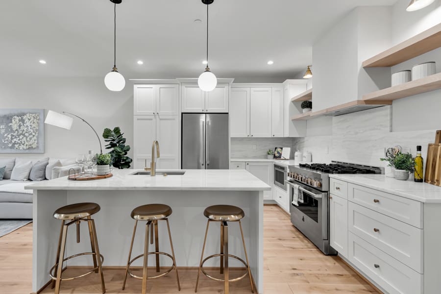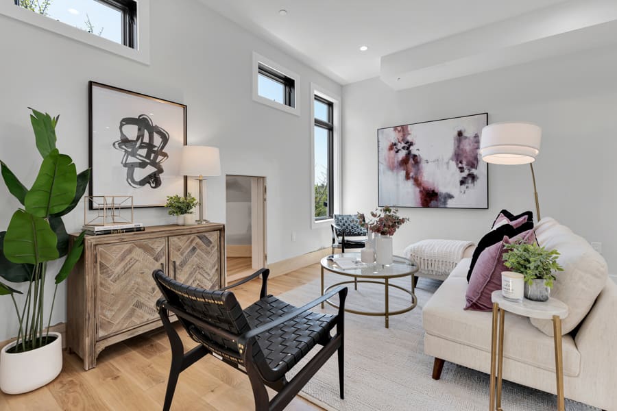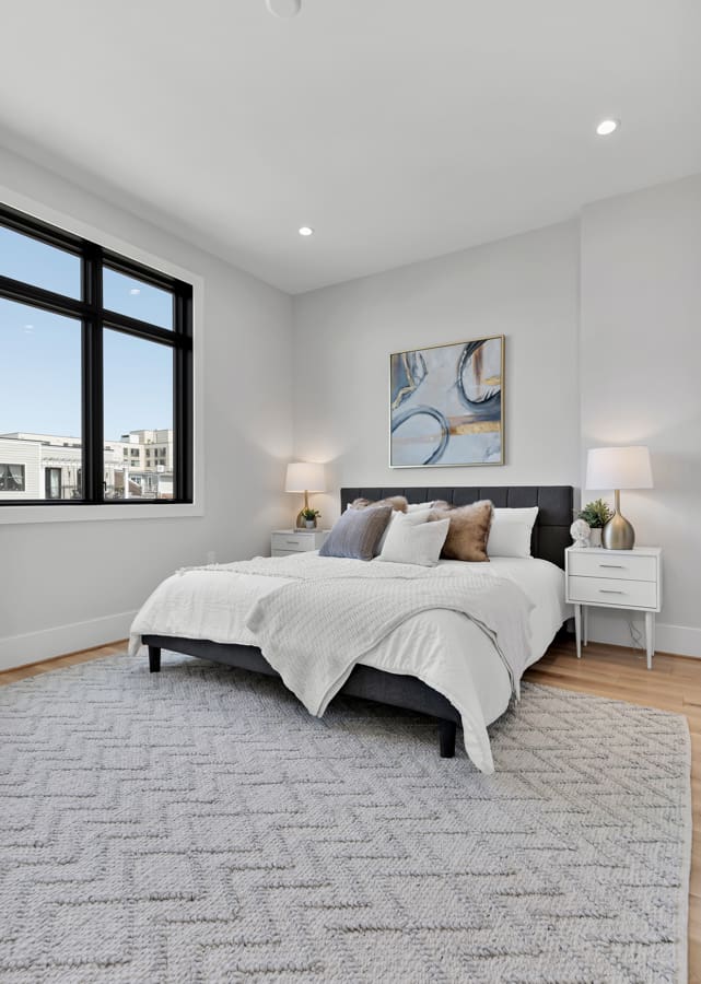 The Amenities: South-facing and sunny, each residence is a homeowner’s dream thanks to an open floor plan, a dedicated office or den, a state-of-the-art kitchen that serves up JennAir appliances, and two large bedrooms with ensuite baths. Everywhere you turn, soaring ceilings, oak floors, and custom-built walk-in closets abound. Tankless water heaters and verdant common grounds round out this exceptional offering!