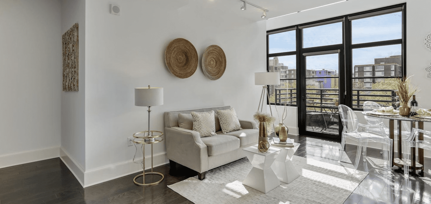 A Look Around: Stunning 2 Bed, 2 Bath condominium located in DC’s hip and trendy Shaw/Logan Circle neighborhood. The luxe 10Eleven Condo is a sought-after boutique building with upscale amenities that include an elegant lobby with plenty of comfy seating around a fireplace and access to a beautiful outdoor terrace perfect for gathering with friends or taking your work-from-home life outdoors. There’s also a gorgeous rooftop lounge with gas grills, a fireplace, and incredible 360-degree views of the city that looks over the Washington Monument and the Cathedral.