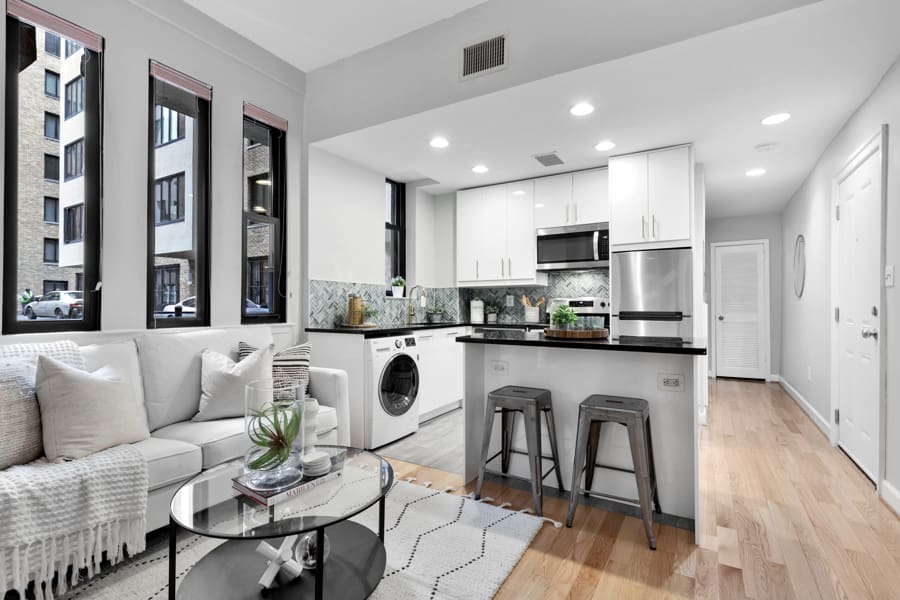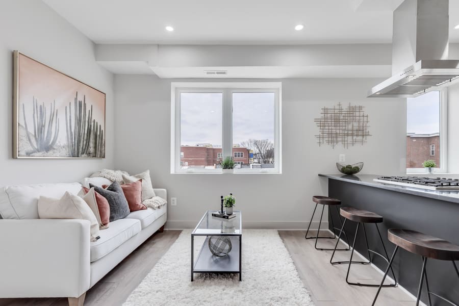 An architectural masterpiece in the heart of Ivy City, The Flats at Kendall were built to stand out. Fusing classic charm with contemporary flair, both units are timeless homes that will never go out of style. The development’s Art Deco exterior sets the tone for what you’ll find within: two one-of-a-kind homes that are as welcoming as they are exquisite.